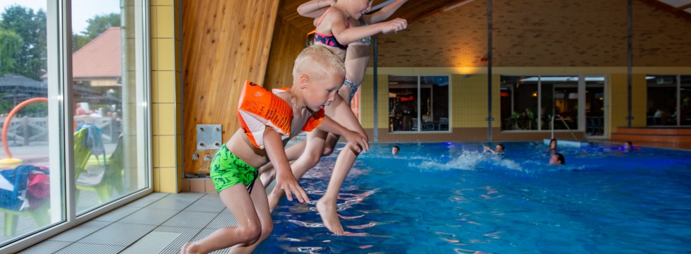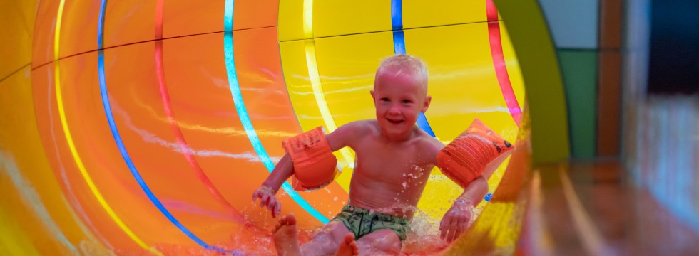 The indoor swimming pool is a guarantee for hours of fun for everybody! There is a recreational pool (1.39 meters deep and 29 degrees celcius), a separate pool for toddlers (31 degrees celcius) and a spectacular slide of 70 meters long with a unique aqua smash game. Who will get the most points and who is the fastest?!